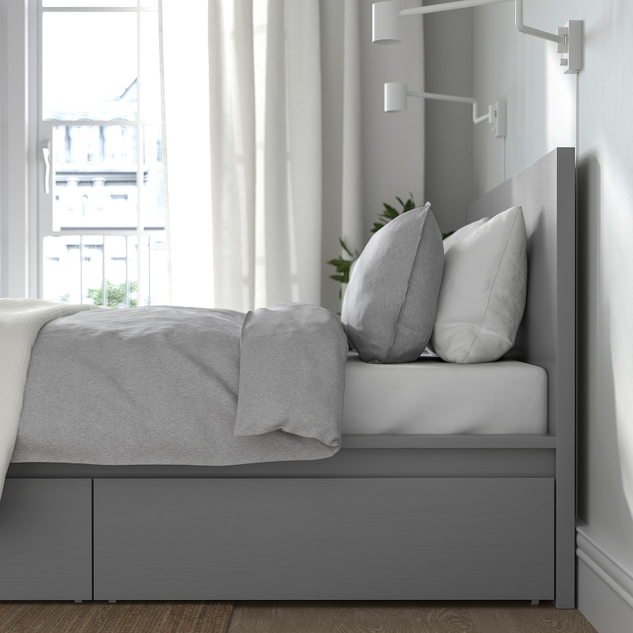 MALM Bed frame, high, w 4 storage boxes, grey stained/Luröy, 160×200 cm - ارسال 30 الی 60 روز کاری